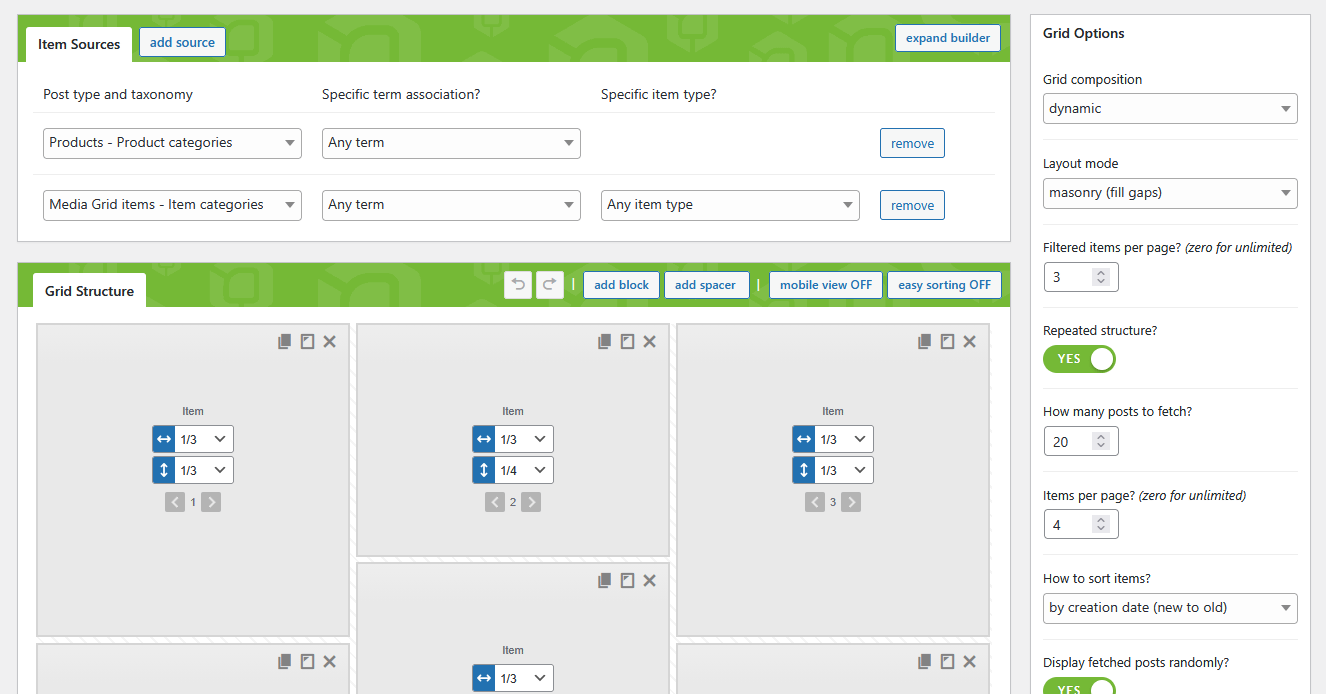 • Create grids using any public post on your website, mixing them with Media Grid items or using WP Media library images